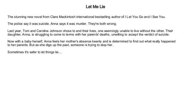 The Book Centre On Twitter Our Half Price Just Published Book This Week Is Let Me Lie By Clare Mackintosh 5 05 In Store Or From Our Website Https T Co Qvszj4m93i Half Price Until Sunday 20th Read 3,310 reviews from the world's largest community for readers.
